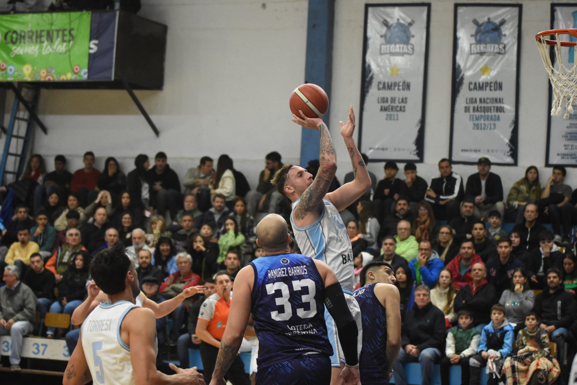 El trámite inicial no varió mucho a lo que venía siendo la serie: un duelo marcado por la paridad y el equilibrio, con posesiones largas y agresividad defensiva. Desde el score Regatas fue el que dominó, pero siempre por poco margen y en el cierre todo quedó empatado en 21. En el segundo cuarto el local abusó de los tiros perimetrales por momentos con poca efectividad y consiguió lastimar desde la pintura, mientras que su rival hizo daño desde el pick and roll y logró quedarse con la primera mitad 39-40.